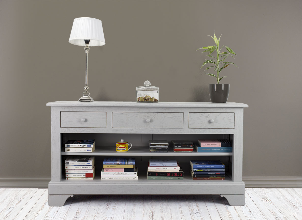 3 tiroirs montés en queue d'aronde, 1 étagère montée sur crémaillères (réglable)