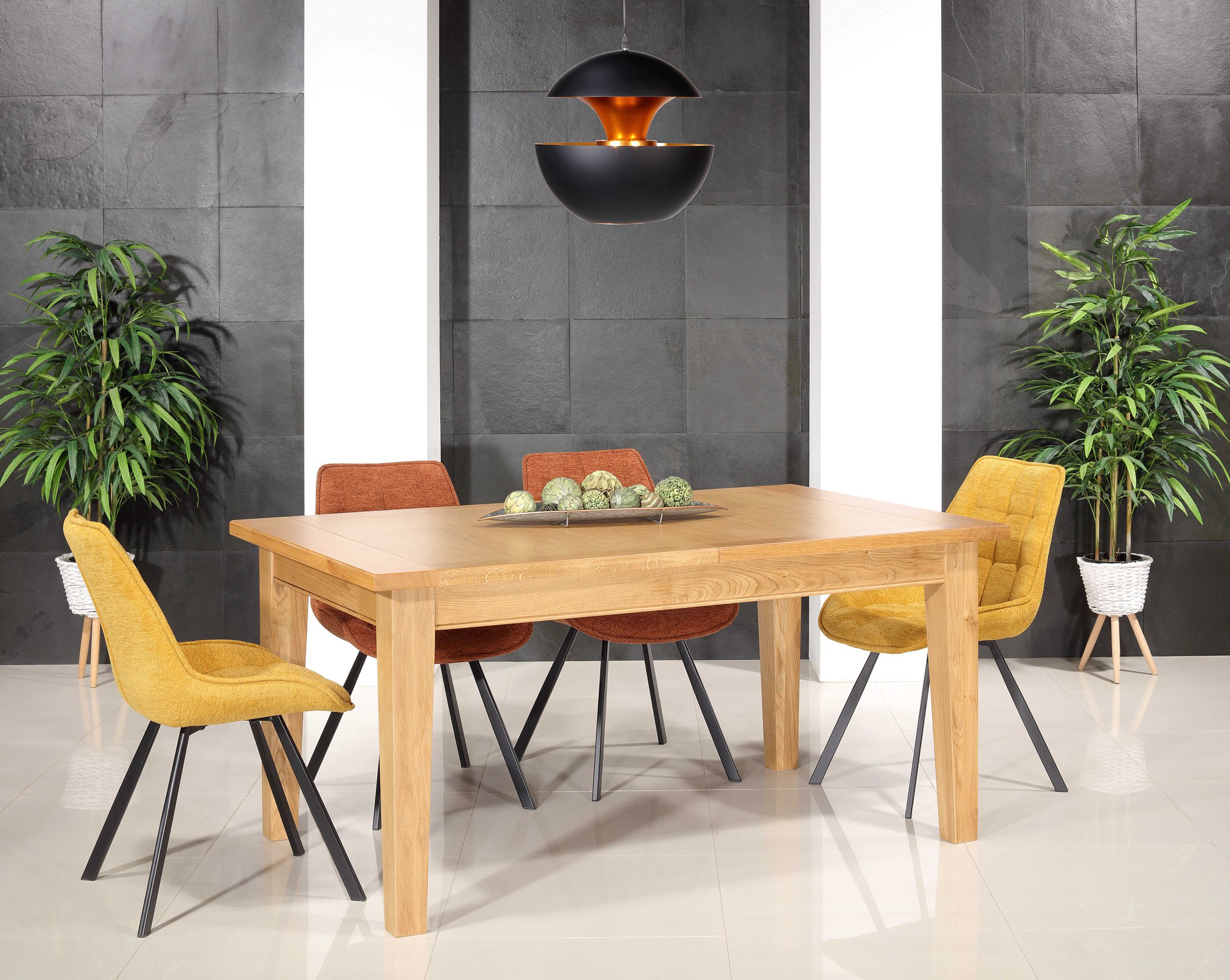 * Les allonges de nos tables sont toutes en placage d'ébénisterie et alaisées massif, afin de permettre un usage confortable et éviter les aléas du matériau vivant qu’est le bois massif.